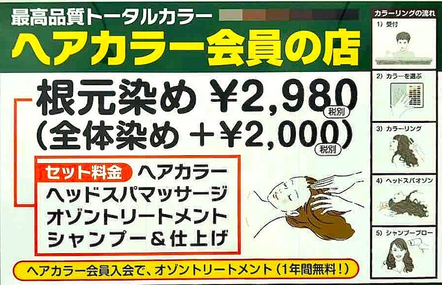 | ヘアカラー(2ヶ月以内) | ¥4,500~ |